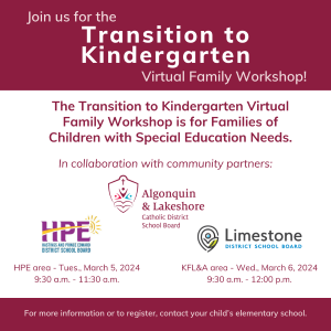 Families of students with complex special needs are invited to an online event about the transition to Kindergarten (T2K).